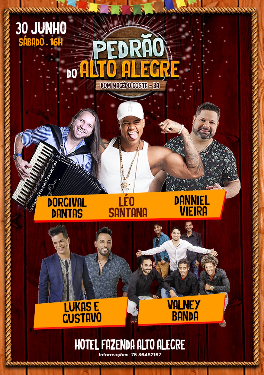 Você é nosso convidado para participar desse grande evento, PEDRÃO DO ALTO ALEGRE em Dom Macedo Costa - Bahia dia 30 de Junho a parti das 16 Horas. com LEO SANTANA, DORIVAL DANTAS, DANIEL VIEIRA, LUCAS E GUSTAVO E VALNEY E BANDA.