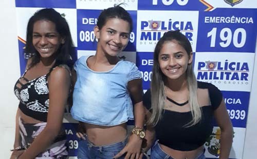 Presas por suspeita de tráfico de drogas, três jovens posaram algemadas para foto ao serem detidas em Pedra Preta, a 243 km de Cuiabá, na quinta-feira (10).